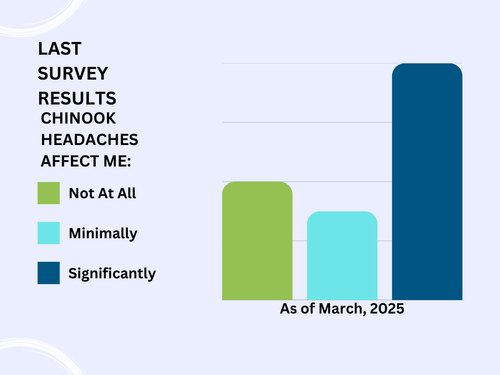 Current Results from our last Survey about how people are affected by Chinook headaches: